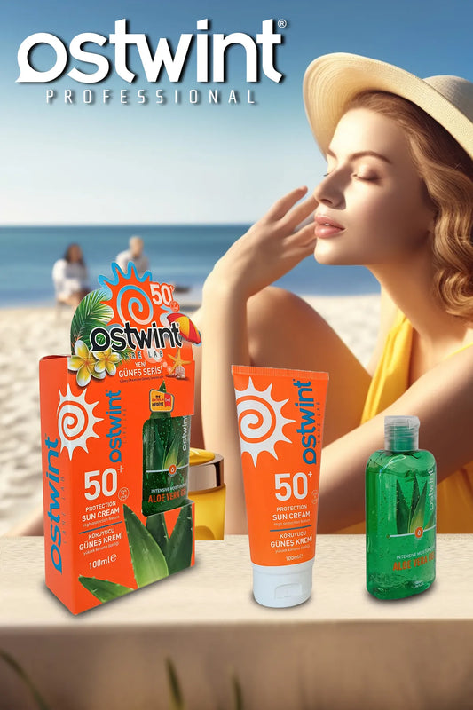 Set de Vara Ostwint – Crema de Protectie Solara SPF 50+, Lotiune Solara, Gel Aloe Vera, 3 x 50ml