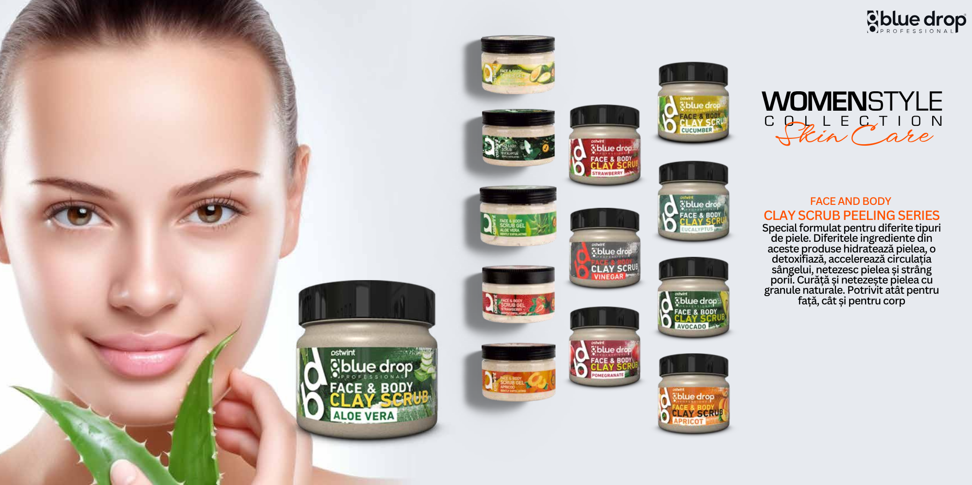 Scrub din Argila pentru fata si corp cu rodie Blue Drop - 480ml