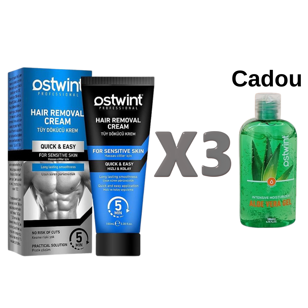 Set 3 bucati de Creme depilatoare pentru piele sensibila Ostwint - 100ml (barbati) + Cadou Gel aloe vera 50ml